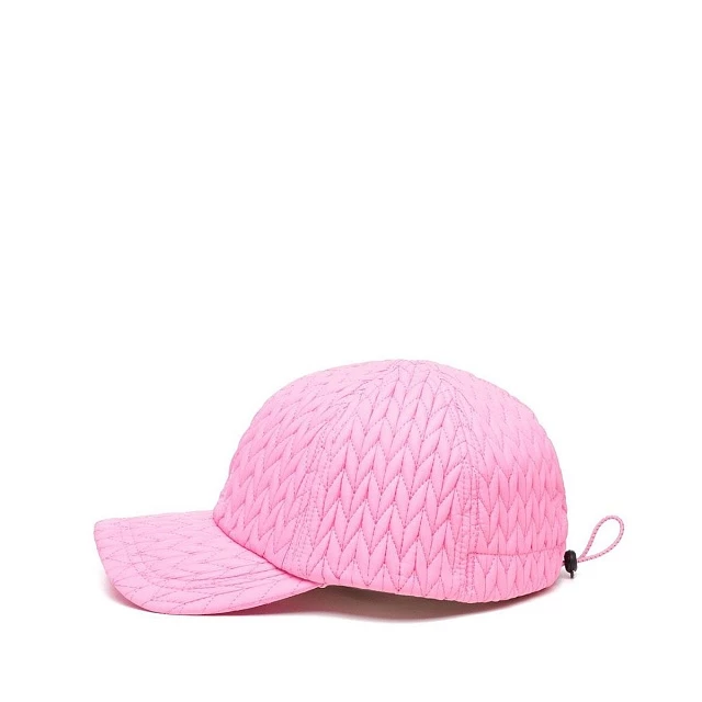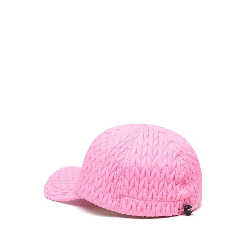 Бейсболка для холодных будней. Стёганный полиматериал бейсболки схож с тем, который используют на производстве верхней одежды. Такой материал восприимчив к дождям, ветру и другим воздействиям внешней среды. Особенность бейсболки - внутренняя, влагоотводящая сетка. В качестве паттерна здесь используется узоры: косичка, сердце и волна. Регулятор для подгонки размера расположен на задней части бейсболки. Классический логотип на переднем плане.