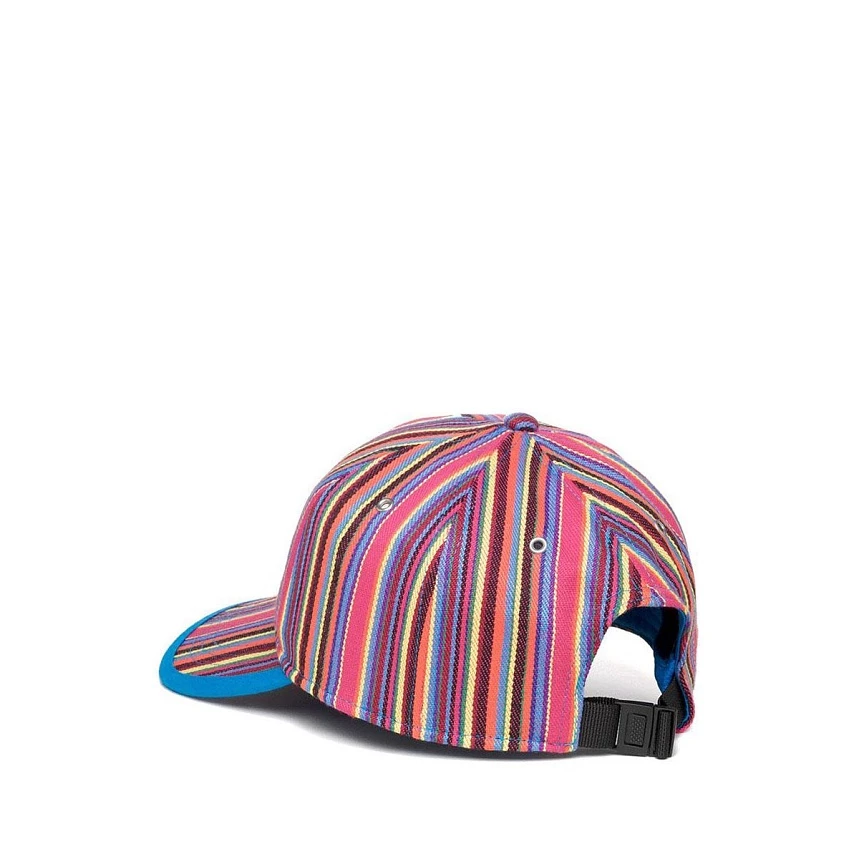 Бейсболка с вертикальными полосами. Особенность бейсболки, помимо насыщенной полосатости — регулятор быстрой утяжки. Яркие полосы, навеяны модой 70х и оттенками преппи культуры. Модерновый логотип из силикона на передней части бейсболки.