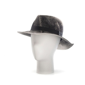 Шляпа из плотнного фетра. Прошедший многоступенчатую обработку, за счет чего головной убор не пропускает влагу и не теряет форму в процессе эксплуатации. Неоднородный цвет достигнут путем смешения разноцветных волокон шерсти в процессе валяния и создает эффект винтажности. Произведена в США.