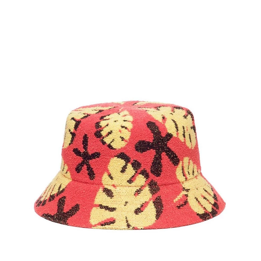 Панама с узорами флоры. Летняя панама с растительными мотивами. Крупные паттерны листьев кажутся объемными, за счет эффекта наложения контрастно яркого изображения на монохромное. Панама с плоским верхом и полями средней длины. Относится к нашей экологичной серии и на 11% состоит из переработанного полиэстера.