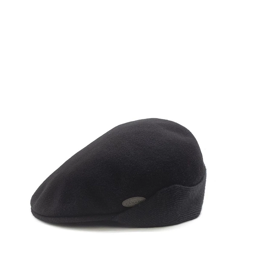 Зимняя шерстяная кепка 504 с ушами. Эта модель по всем параметрам в точности копирует классическую 504 Kangol Cap, но обладает весомым преимуществом в холодный сезон - откидными "ушами". Еще одно отличие - кожаный овальный логотип сбоку взамен стандартному вышитому кенгуру сзади. Такое расположение обусловлено тем, чтобы логотип не скрывался при поднятых "ушах".