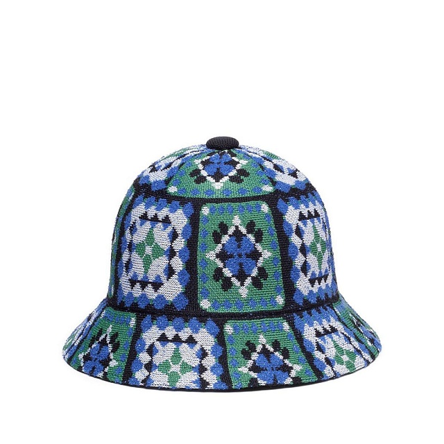 Летняя панама с геометрическим орнаментом. Этнический узор головного убора отсылает к народным промыслам практически любой точки земного шара. Лоскутная техника - явление массовое и известное на территории многих стран. Изделиями этой техники могут похвастаться и Мексика, и Англия, и Россия. Основное различие - сам орнамент, хотя и геометрия узора может перекликаться от случая к случаю. Каждое цветовое решение реализовано посредством создания узора из смешения двух частей нашего фирменного базового материала "тропик", одной части материала "бермуда" и одной части восстановленного из пластиковых бутылок полиэстера.