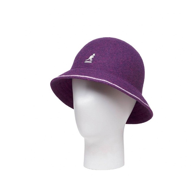 Каноничный силуэт бренда в шерстяном исполнении. По нижнему краю полей проходит полоска контрастного цвета. На фронтальной части головного убора - стандартный вышитый логотип в виде кенгуру.