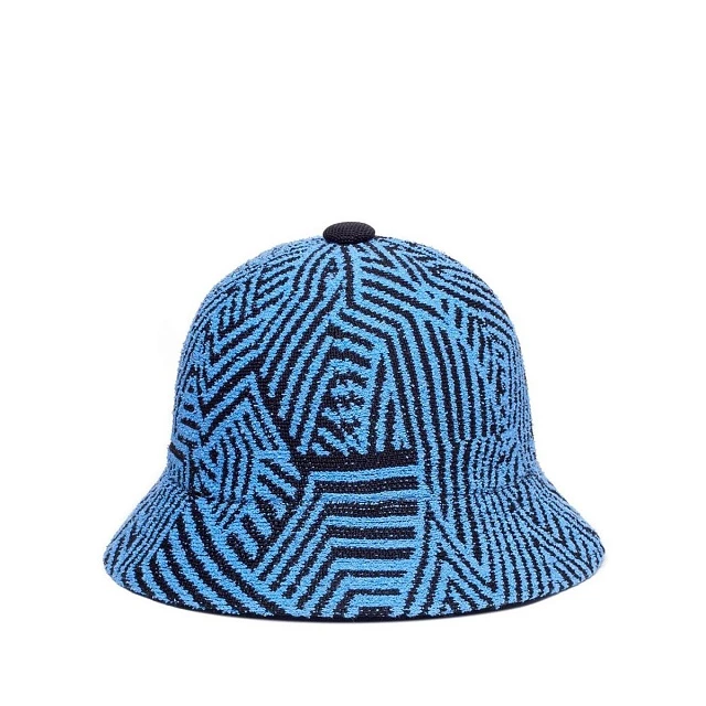 Панама, деконструирующая узоры из прямых линий. При дизайне этой панамы за основу взяли любовь высокой моды использовать гексагональные паттерны из тонких полос. Если разобрать на составляющие подобную систему, то получится перемешать между собой каждый из 6 кусочков паттерна, потеряв при этом эффект глубины, но создав впечатление упорядоченного хаоса. Где начнётся следующая линия и закончится предыдущая?