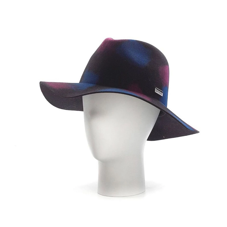 Широкополая фетровая шляпа-трилби произведенная в США. Особенность модели - техника окрашивания: разноцветоные пятна добавляются вручную и делают каждую шляпу неповторимой.