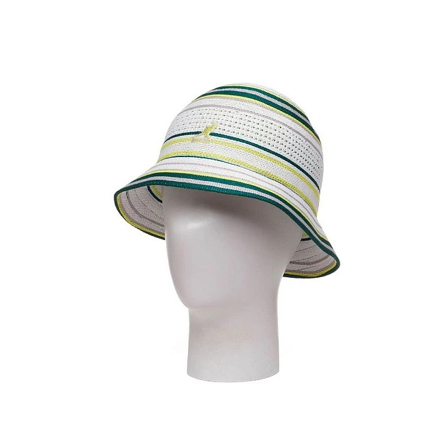 Классический силуэт в духе студенческих спортивных групп. Жаккардовый трикотаж с полосами четырёх цветов. В экологичный состав добавлен полиэстер, полученный в результате переработки пластиковых отходов. Для дополнительной вентиляции, на тулье панамы выполнена перфорация. Эстетика студенческих команд по гребле и конному спорту присутствует.